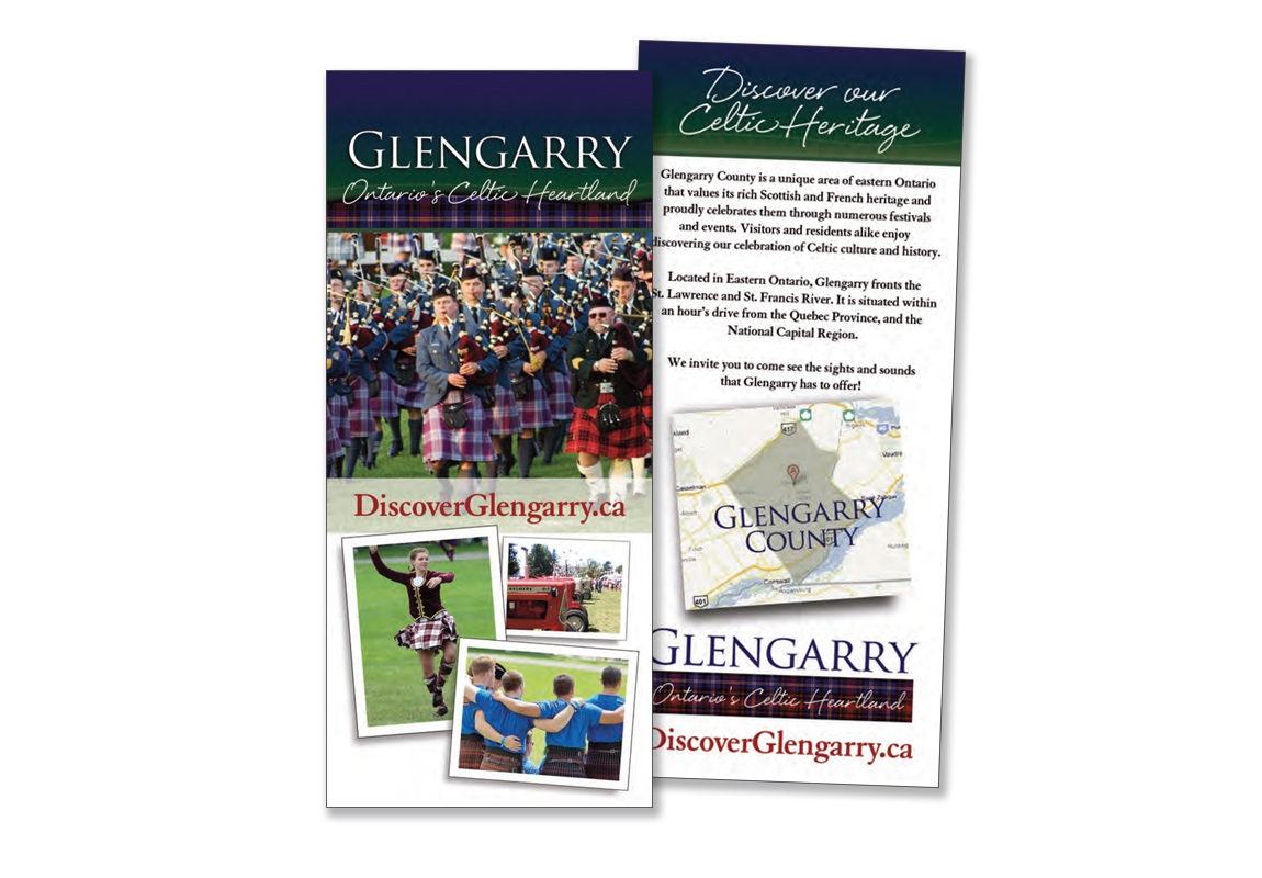 Glengarry County is a unique area in eastern Ontario that celebrates its rich Celtic heritage through numerous festivals & events. TD Graham + Associates was hired create a brand for the region that captured the essence of its assets and traditions. We developed the tagline "Ontario's Celtic Heartland" and designed a brand that included the Glengarry tartan – recreated pixel by pixel from the actual Scottish plaid commissioned by the Glengarry Highland Games Association.