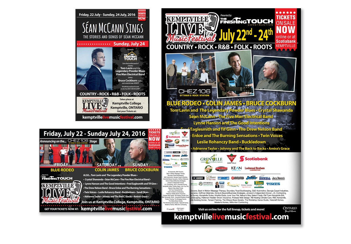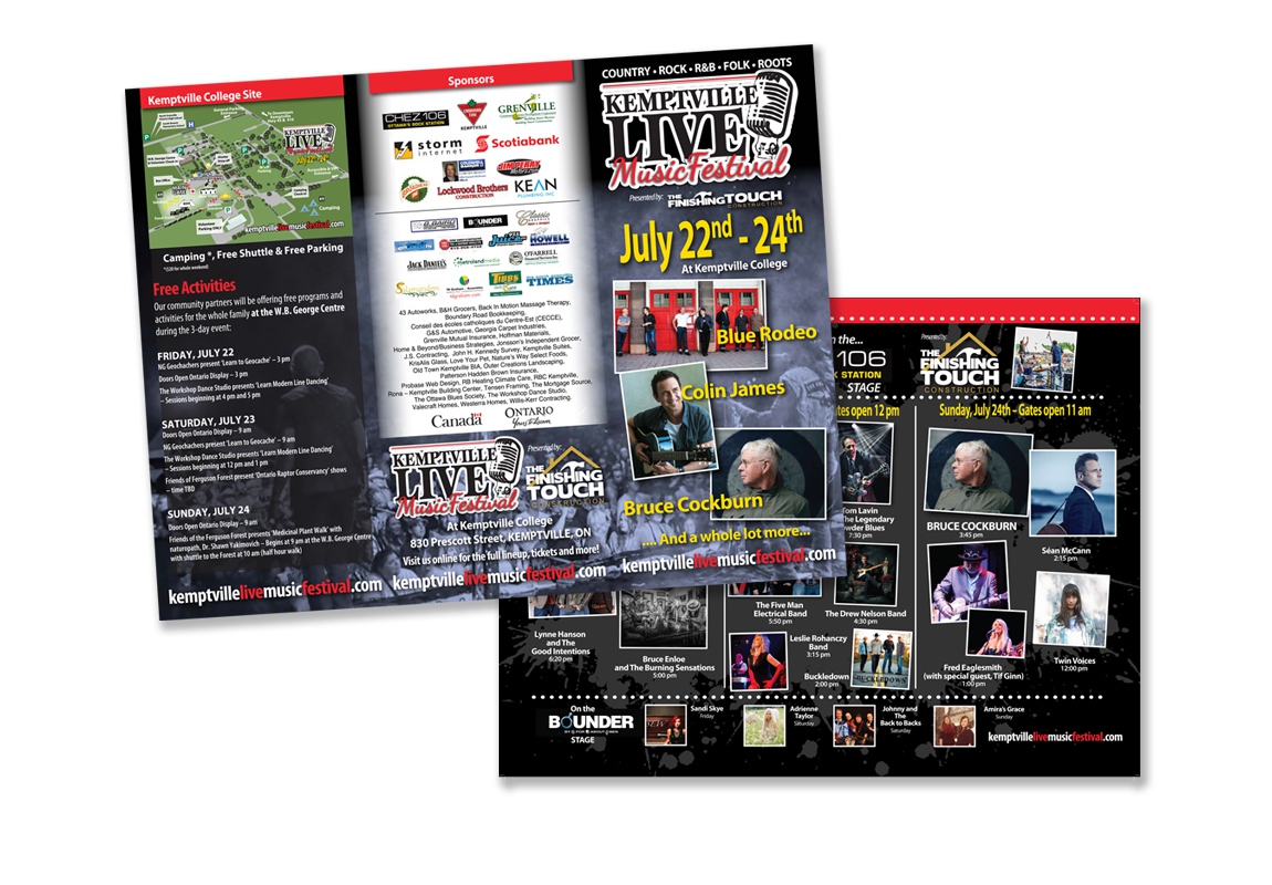 Working closely with our web partners, Probase Web, TD Graham + Associates developed a brand and promotional materials including a website with online ordering, signage and print ads. Kemptville Live is positioned as the premier music festival in the community.